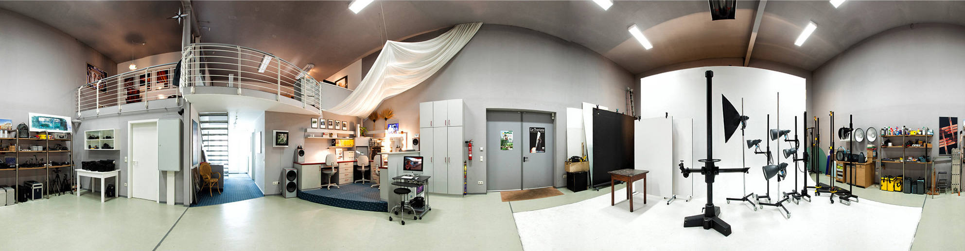 Das Studio: 120qm Grundfläche, 3m Toreinfahrt, 5m Raumhöhe, 7m Endloshorizont. Vollausgestatter Lampenpark, Mittelformat- und KB-Kameras, zwei Bildbearbeitungsplätze mit Mac-Rechnern und neuester Bearbeitungssoftware.